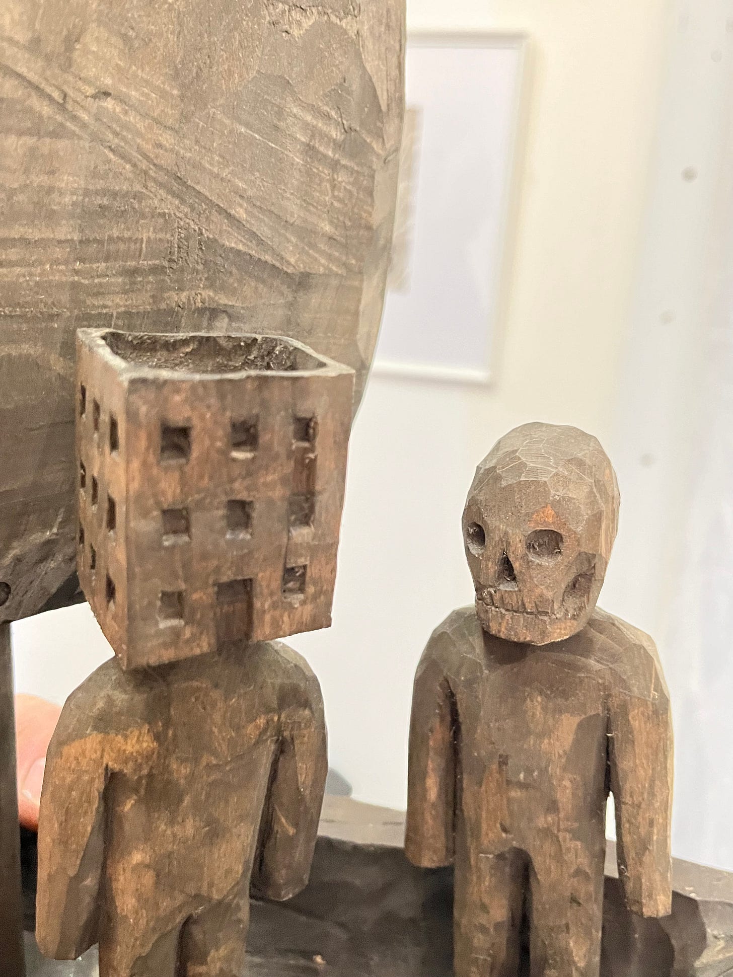 Indoors, an exhibition called “In the Name of the City” showed, in drawings and wooden sculptures, interactions among four figures: City, Love, Death, and Hope. City is a human figure with an apartment building for a head—the city as hero. I’ve rarely encountered a place with such intense local patriotism. At another event, I asked a group of students what they would consider victory for Ukraine. One replied, “When everyone in our country loves Ukraine as much as we love Kharkiv.”